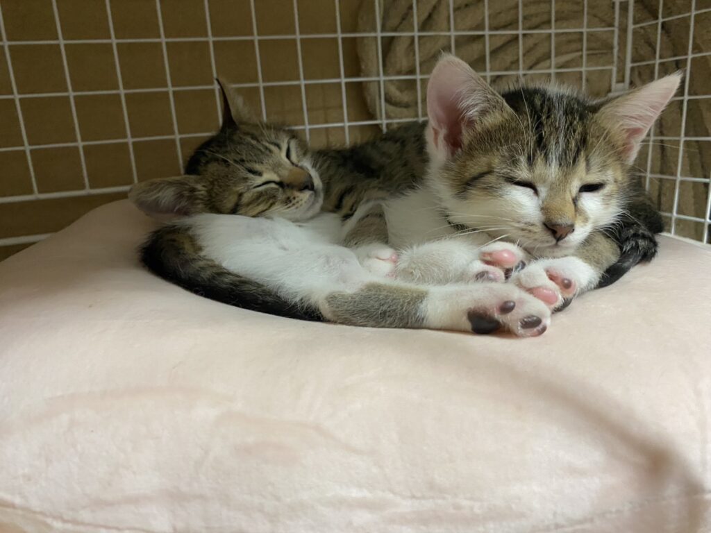 母猫の育児放棄かおっぱいをもらえない子猫を見つけ、他にも兄弟はいましたが亡くなったり猫風邪を引いていたりしていたので残った二匹を保護しました。