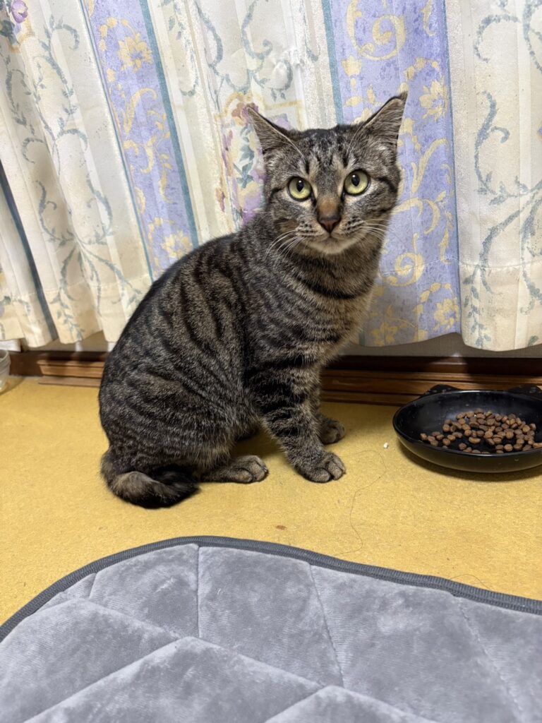 生後半年位の捨て猫がおり、居着くようになりました。