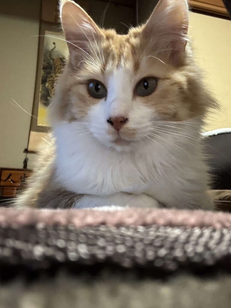 身体すりすりしてきてとても甘えん坊ですが抱っこはまだできません。